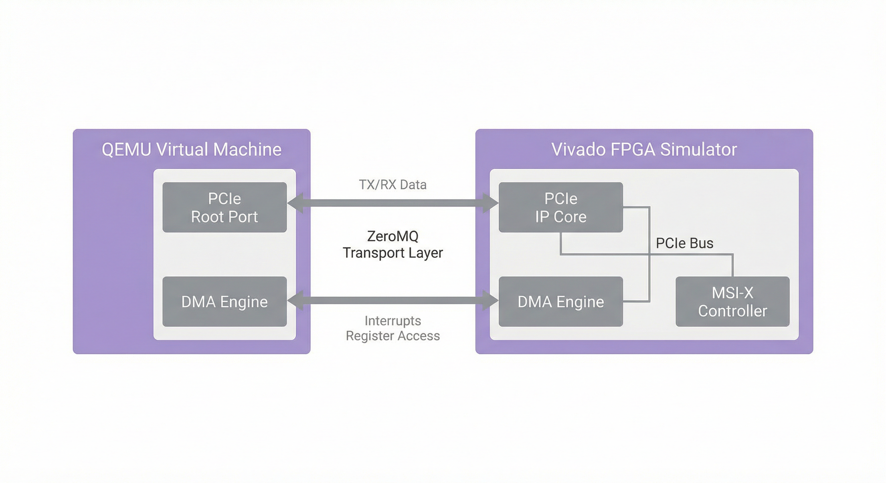 Developed a comprehensive co-simulation platform that enables reproducible host-FPGA verification without requiring RTL changes. This platform bridges the gap between software simulation and hardware development.